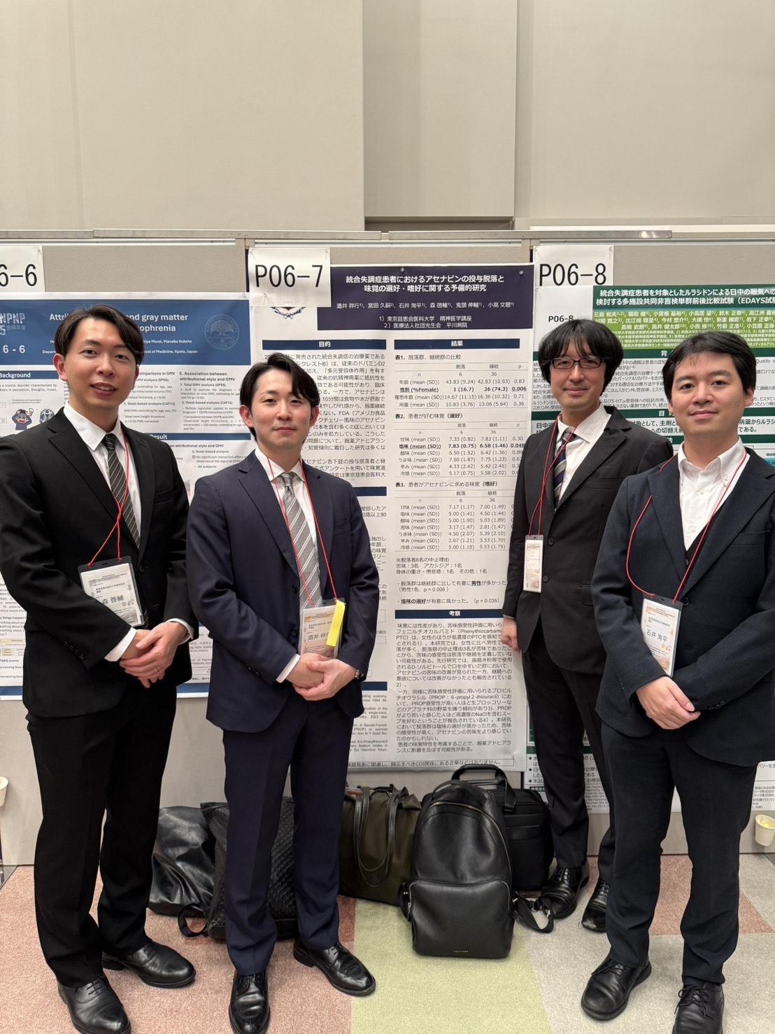 また、森啓輔先生の発表「ガイドライン一致率が高い統合失調症患者・うつ病患者の処方特徴」が若手優秀発表賞を受賞しました。
